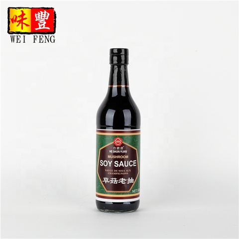 ผู้ผลิต OEM 500มิลลิลิตรขวดแก้วเพื่อสุขภาพเห็ดเข้มซอสถั่วเหลืองฮาลาล